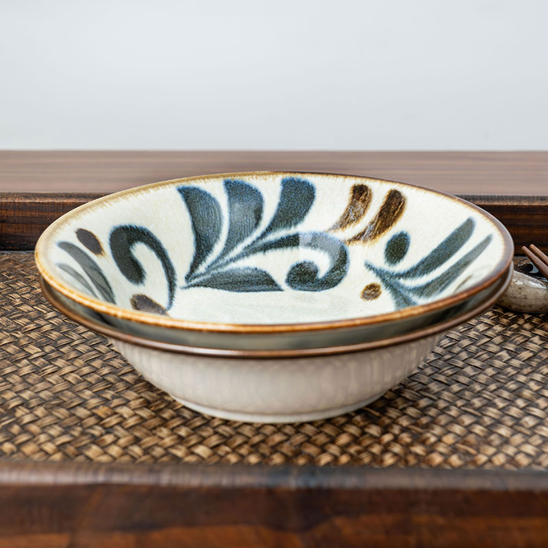 美浓烧彩绘琉球花7.0英寸深盘进口菜盘家用特别好看的盘子饺子盘