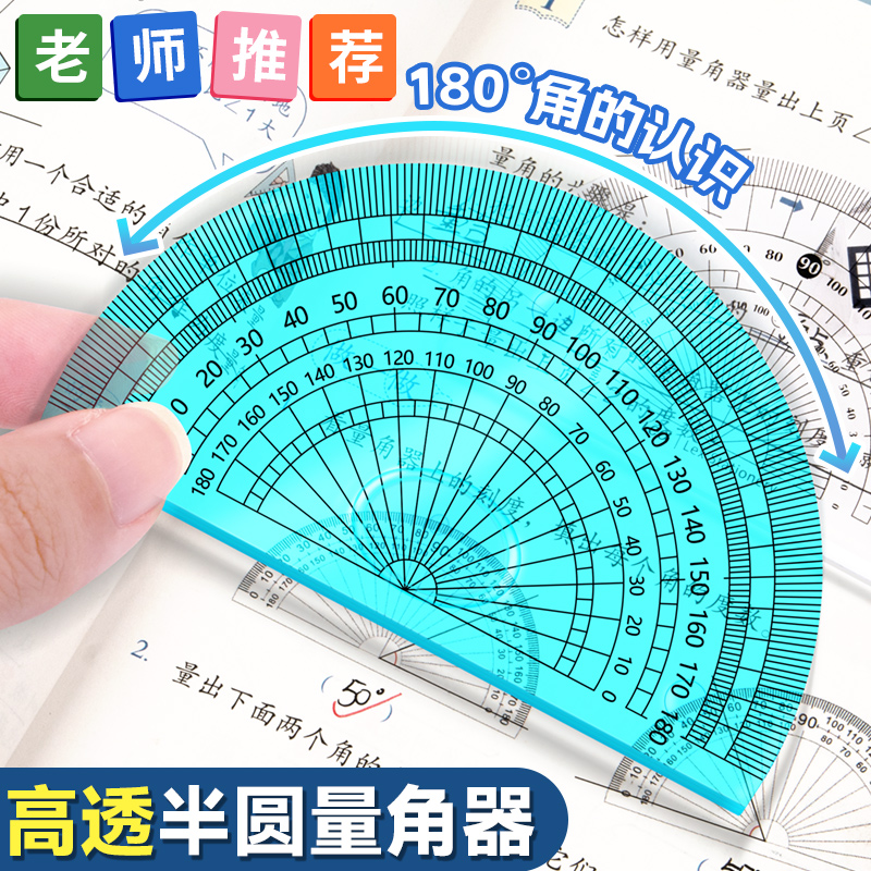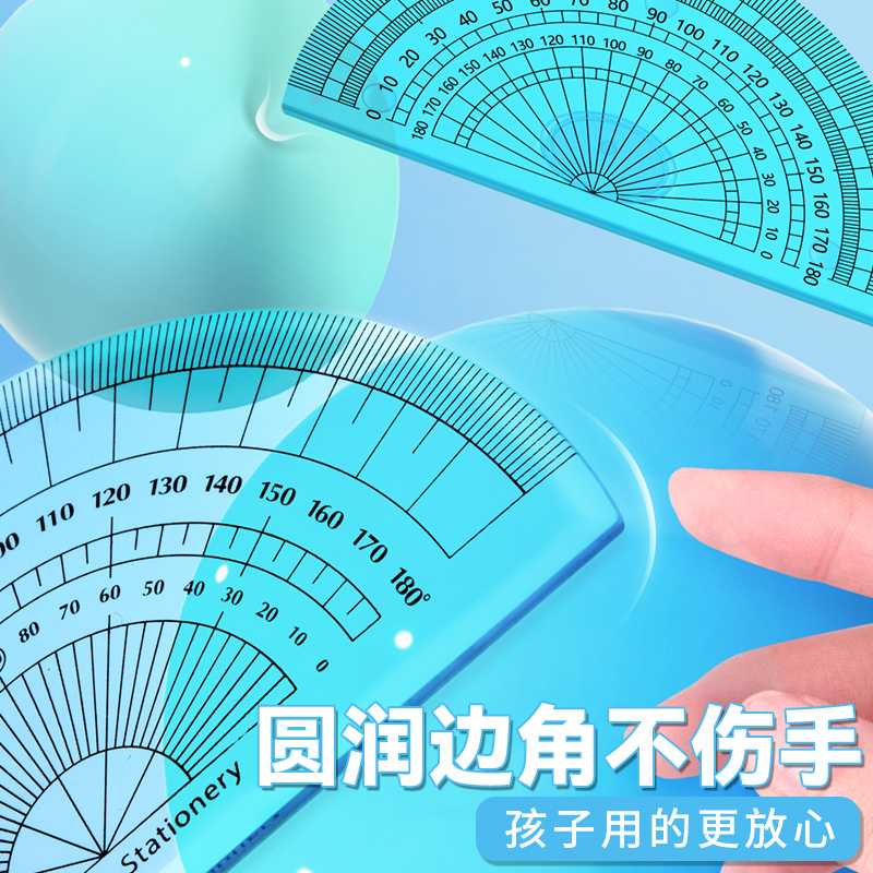 单个量角器小学生专用多功能三角尺套装软尺子套尺三四五六4年级数学角度精准透明教具初中生半圆仪清晰文具