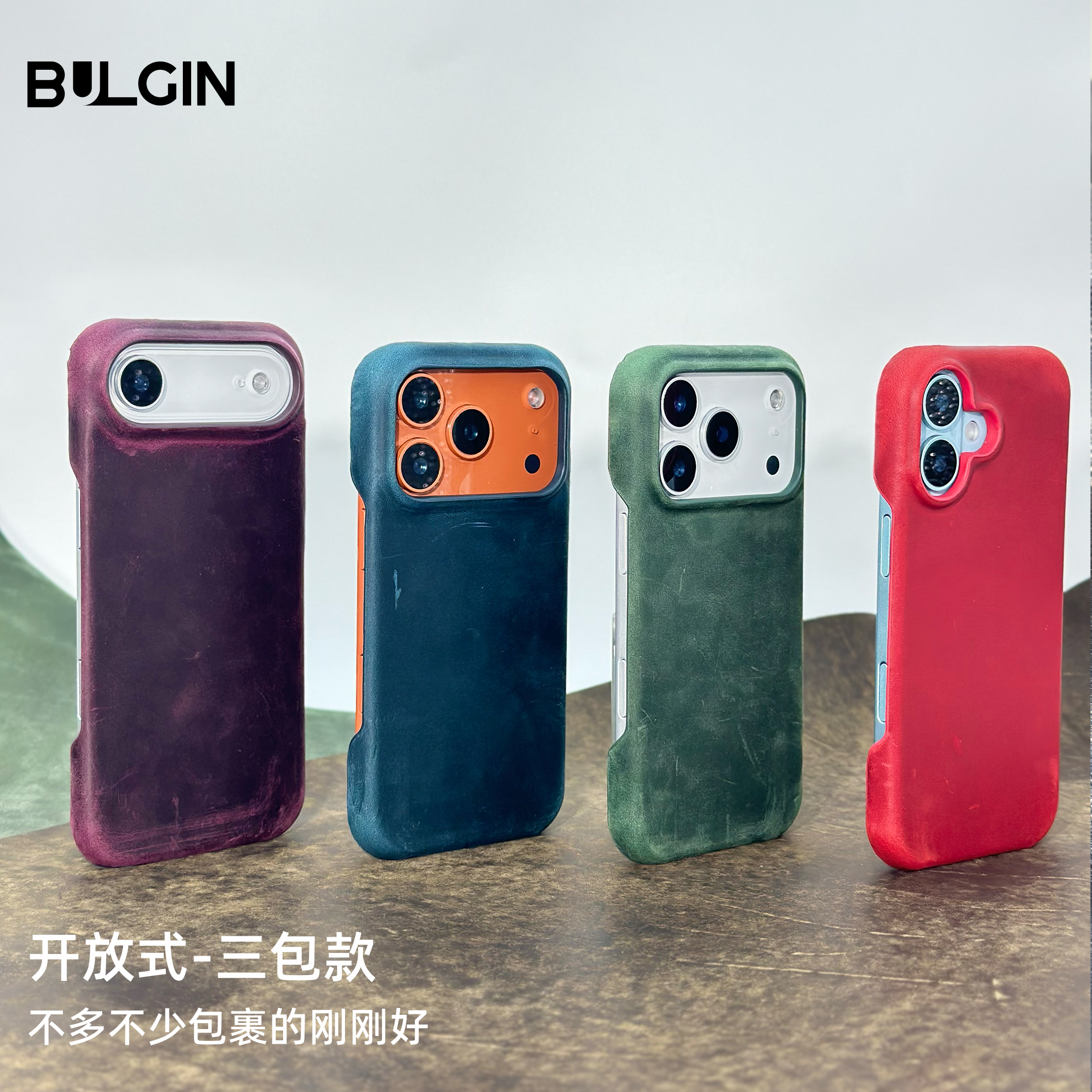 BULGIN头适用苹果17promax手机壳真皮iPhone16保护皮套17air复古可盘15/14手工壳防摔皮质疯马牛皮革套高级