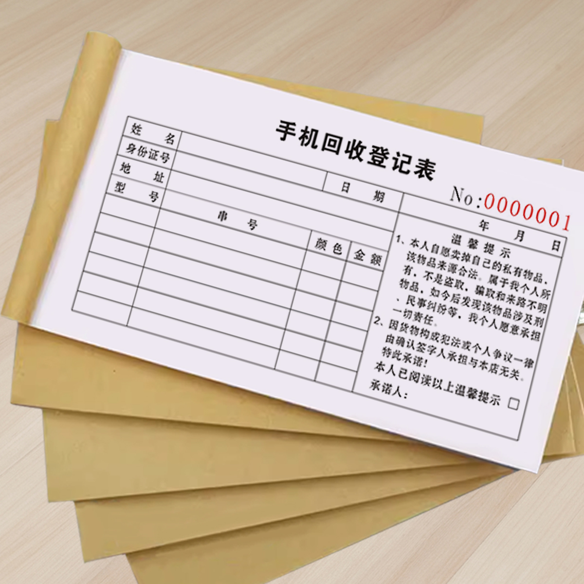 2本手机维修店快修站用手机销售登记表二联手机解锁协议销售票据回收合同书或回收登记表定制收据开锁协议书
