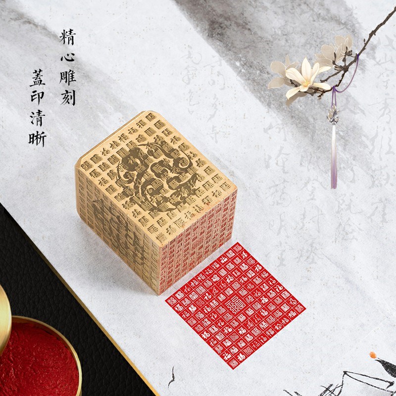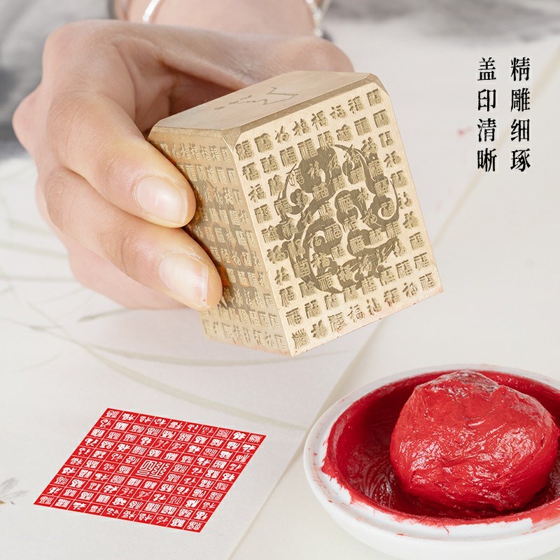 百福 4*4*5 赠礼盒书法刻章国画成品印章精雕机刻黄铜闲章篆刻定