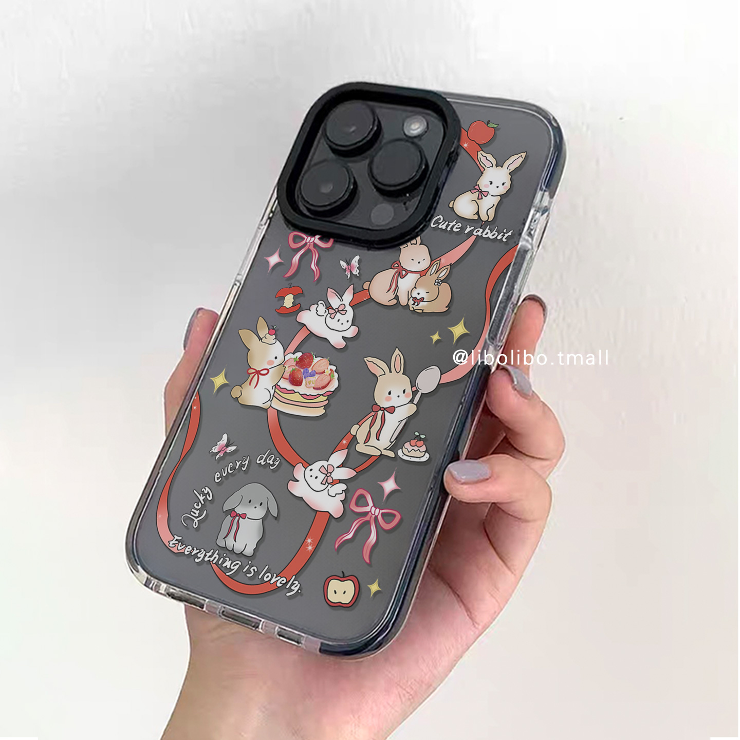 哩卜哩卜幸福小兔庆典适用iPhone17/16promax手机壳15黑边13少女心11plus全包12pro防摔xsmax苹果14软8plus