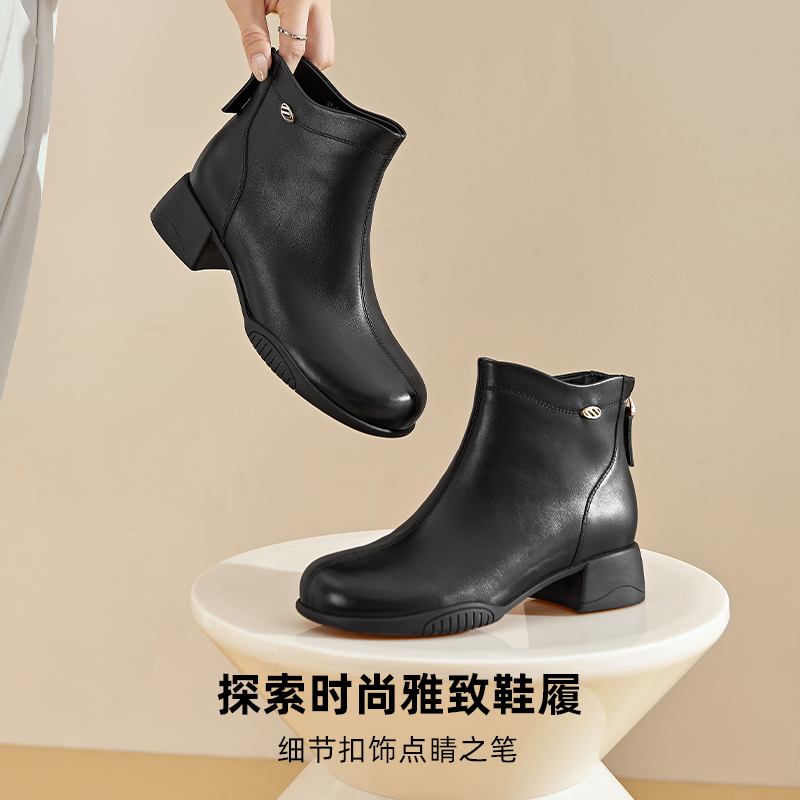 【羊皮】真皮粗跟单靴女秋冬法式小短靴及踝靴马丁靴新款妈妈鞋子