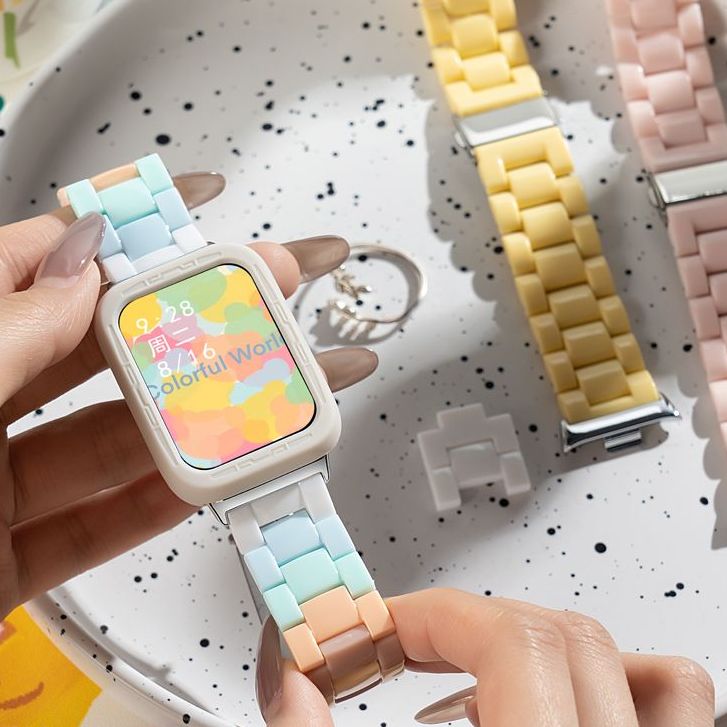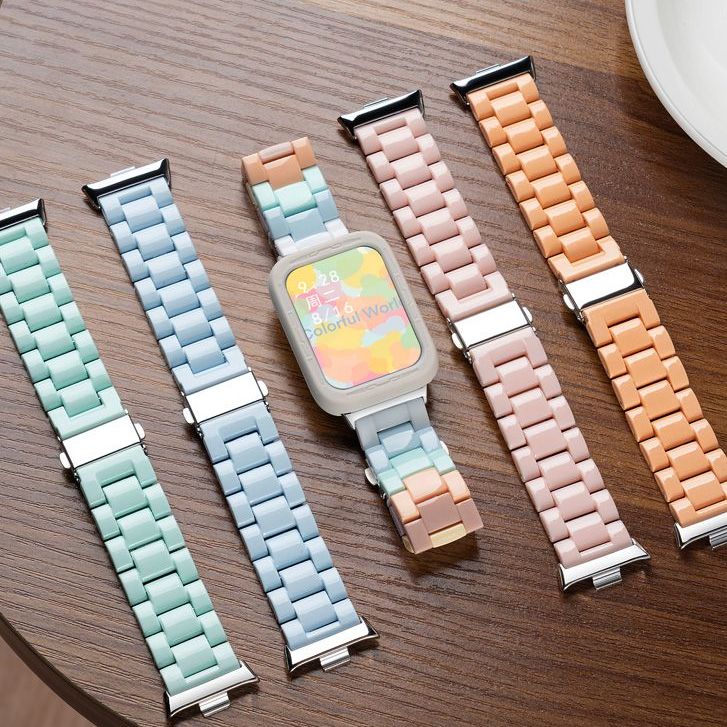适用小米手环9Pro表带8Pro红米watch5/4新款夏糖果拼色树脂腕带运动智能手表八九代亚克力男女生高级时尚表链