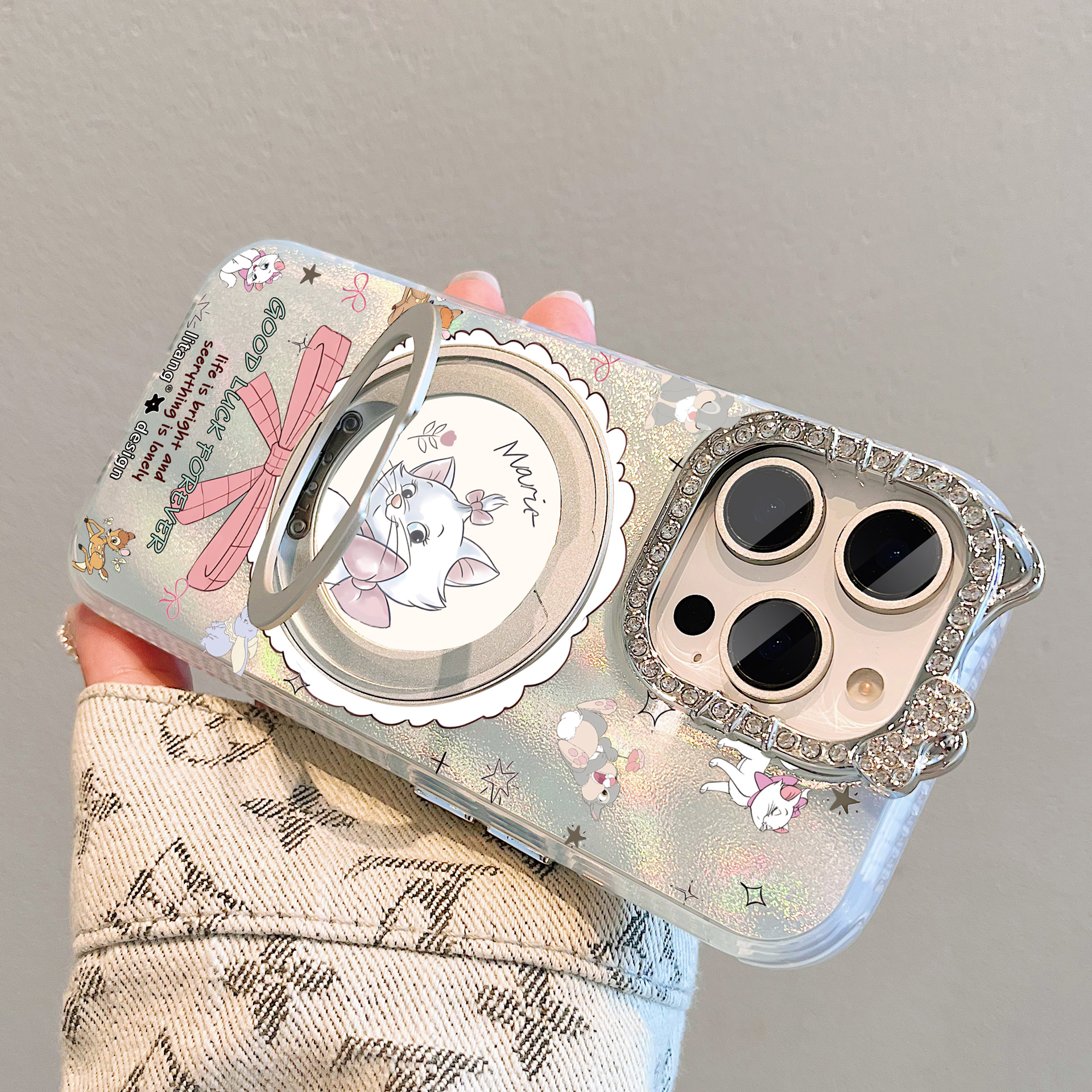 玛丽猫的公主梦适用苹果16promax手机壳360旋转支架iPhone17pro支点壳14满钻猫咪好看13pm少女心16新款保护套