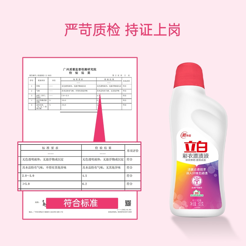 立白彩衣漂渍液活氧彩漂剂还原彩色衣物漂白剂去污渍增白去黄通用