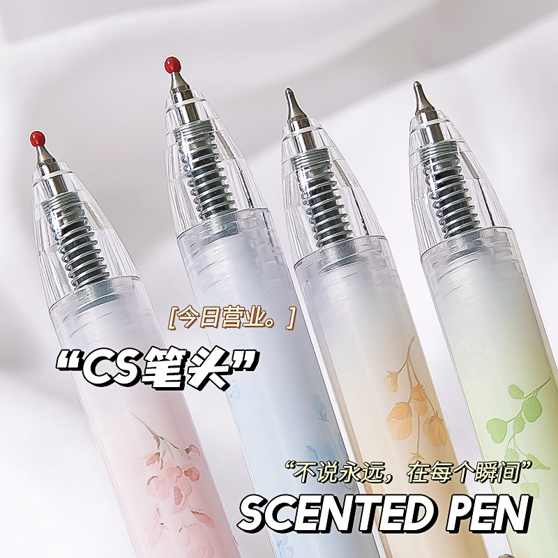 与你香遇 按动中性笔香味笔芯黑色水性按压式CS笔头刷题笔速干顺滑创意花香高颜值小清新考试用女生款0.5mm