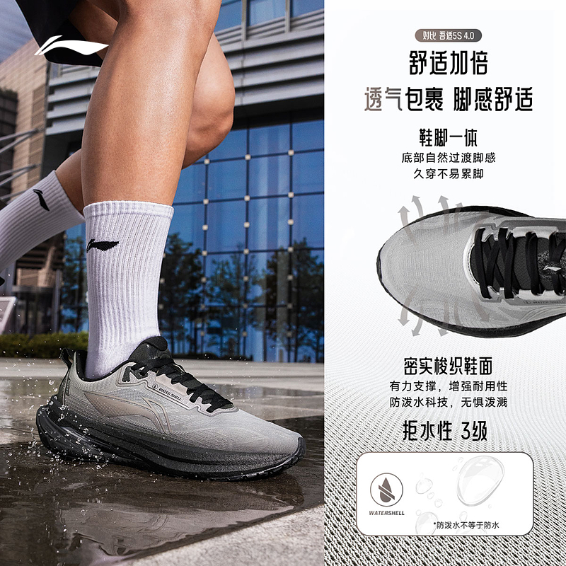 李宁跑步鞋 吾适5.0防护版 男女款缓震支撑稳定防泼水休闲慢跑鞋