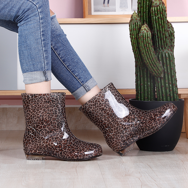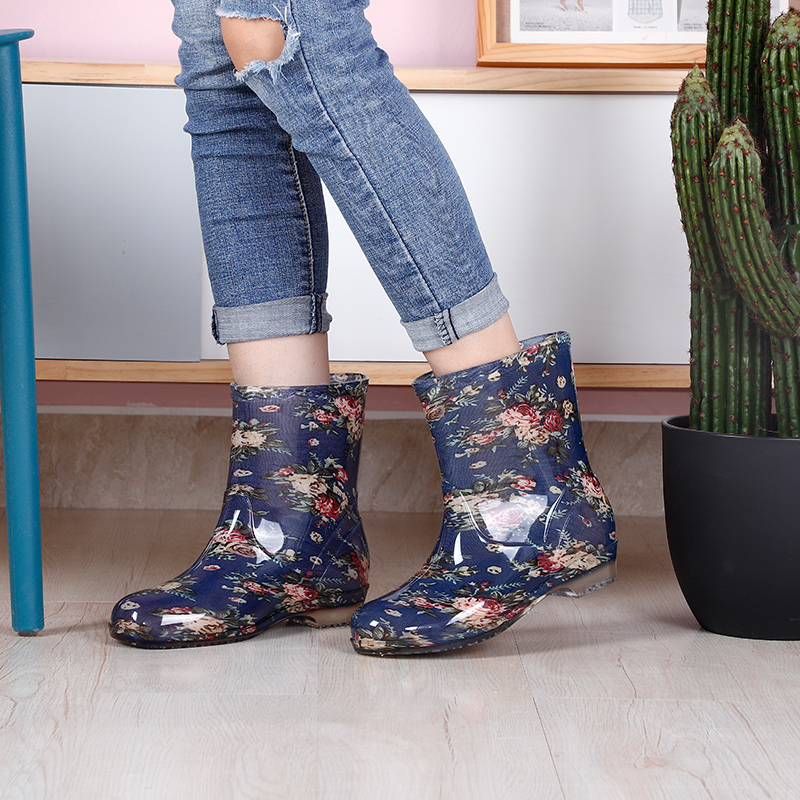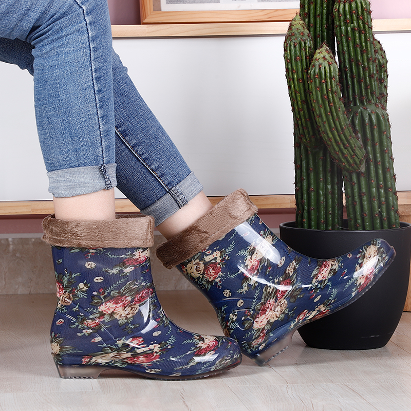 中低筒雨鞋女士短筒水鞋雨靴半筒水靴花布成人加棉绒防雨防水胶鞋