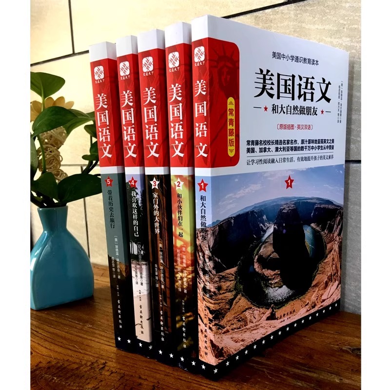 正版】美国语文五本套装正版常青藤版英汉双语版埃德温埃尔德曼精编美国中小学通识教育读本和大自然做朋友和小伙伴们在一起