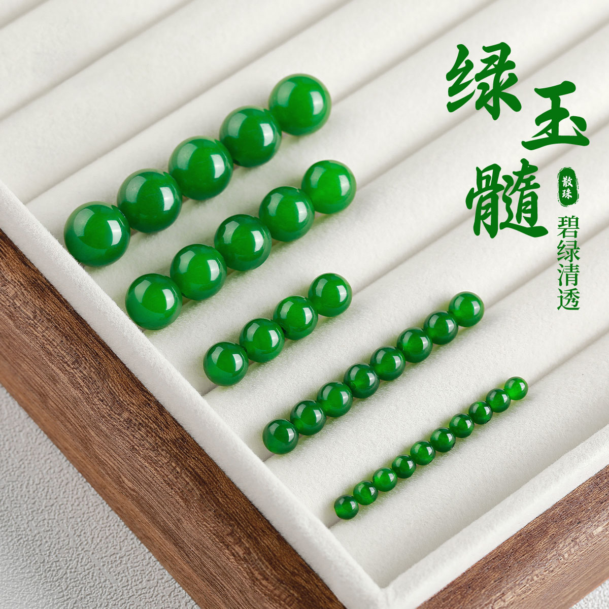 7A天然玛瑙碧玉绿色玉髓散珠菠菜绿圆珠单珠diy手工配件佛珠串珠