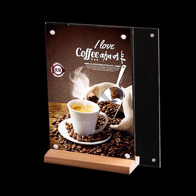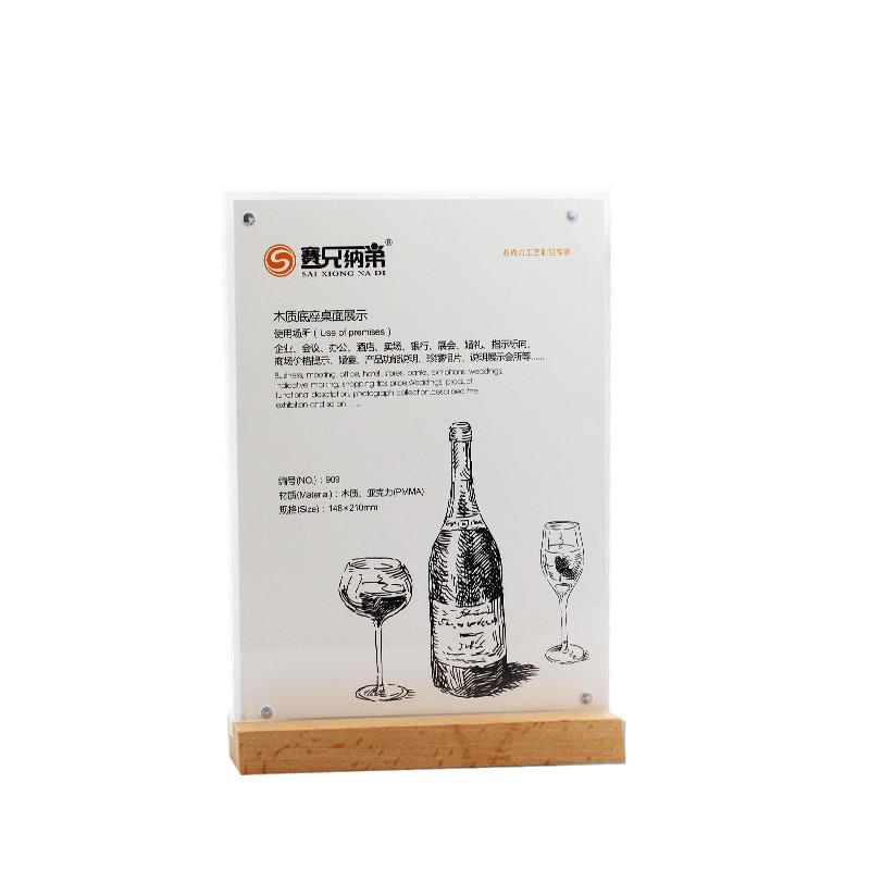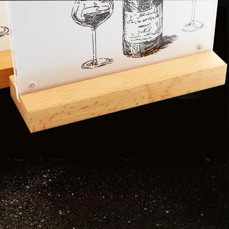 A5原木台签台牌透明亚克力桌牌标价签T型强磁展示架广告牌台卡