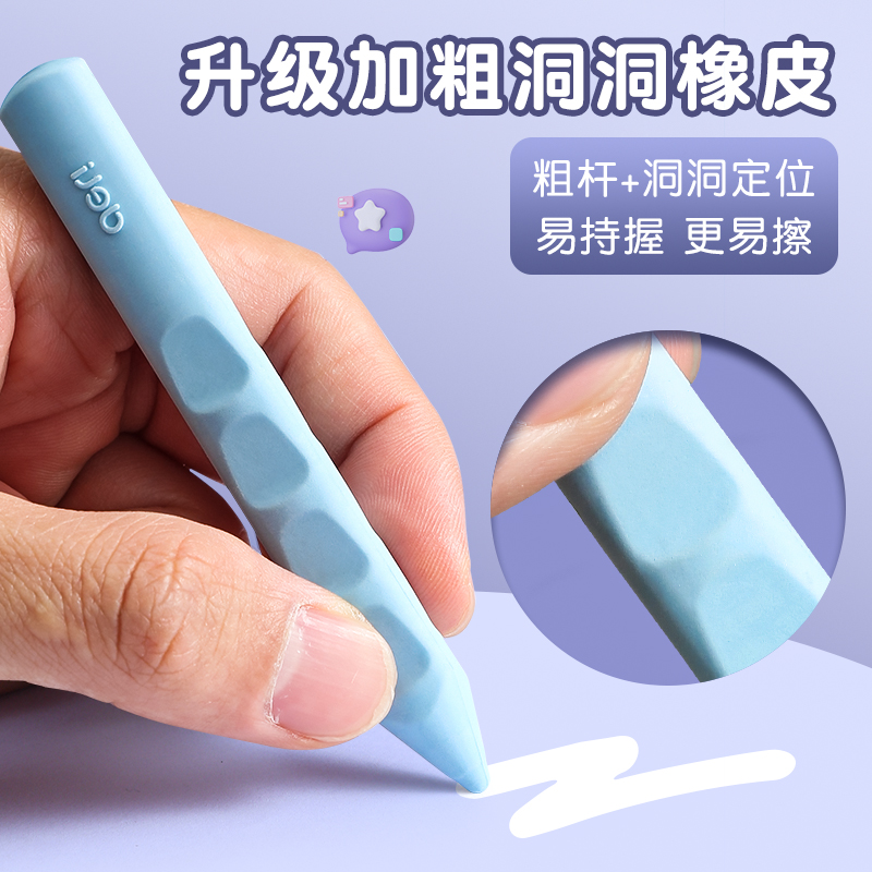 得力超大洞洞橡皮小学生专用儿童像皮擦安全无学生无屑大象皮像笔檫美术生幼儿园学习文具用品擦字成条可爱毒
