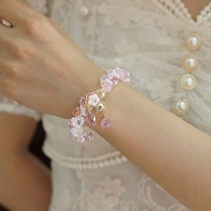 超闪水晶手链女粉嫩贝壳花森系超仙可爱少女学生手串直播闺蜜手饰