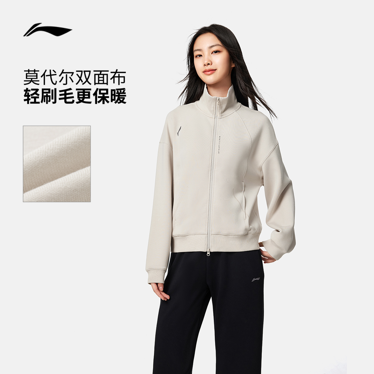 李宁外套女秋冬2025新款松弛感立领上衣瑜伽针织女装拉链运动卫衣