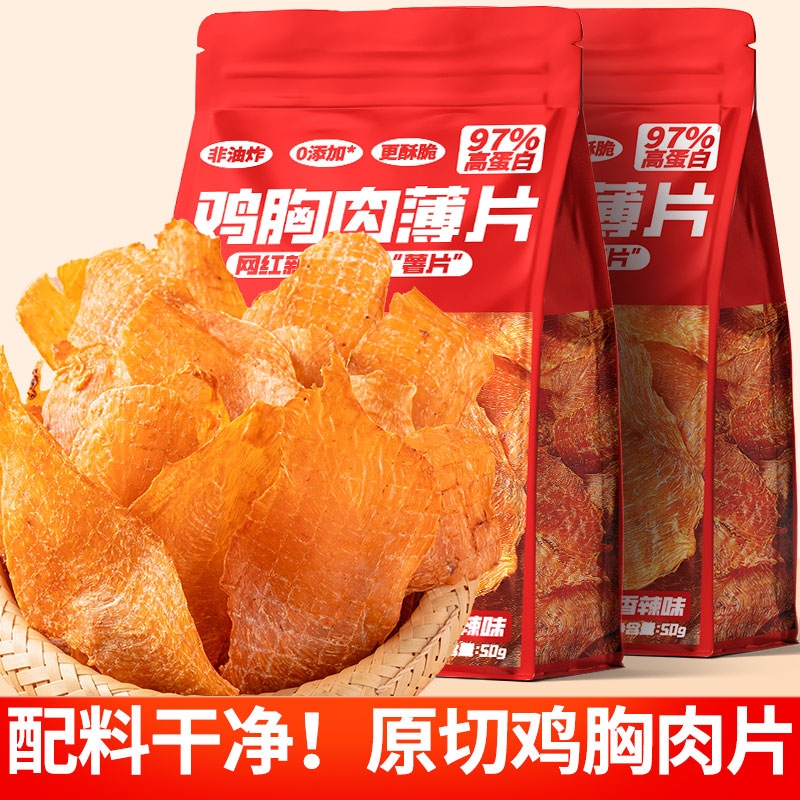 鸡肉脆片薄脆鸡胸肉干风干高蛋白减低0健身脂肥网红解馋零食小吃