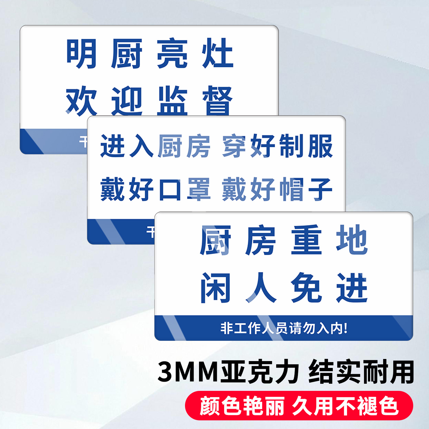 明厨亮灶欢迎监督标识牌厨务人员进入厨房前请带口罩厨帽子提示牌