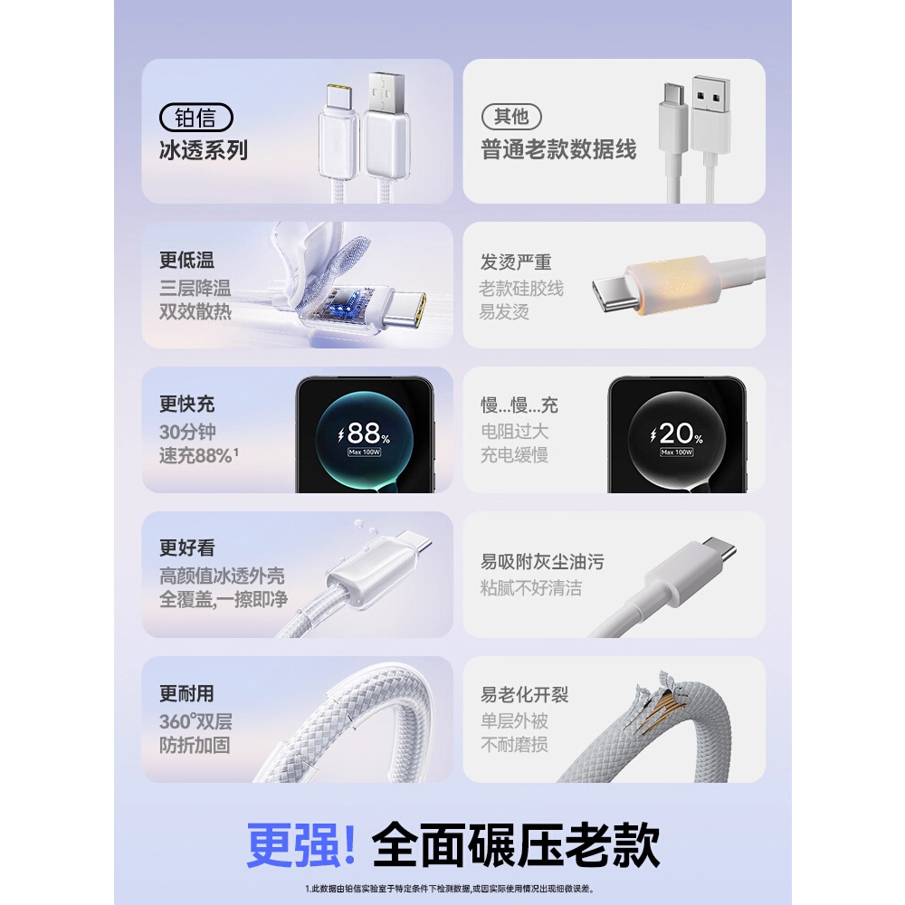 【次日达】type-c充电线铂信适用华为小米OPPOvivo荣耀mate70数据线100w88w66w超级快充安卓手机充电线pura80