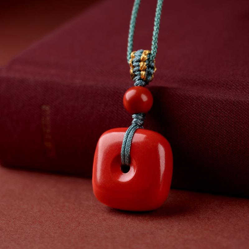 本命虎年保真红砂四方平安扣吊坠女款项链挂件原石款饰品
