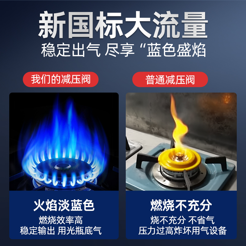 煤气减压阀双嘴双头开关液化气家用煤气灶调压器燃气可调新国标