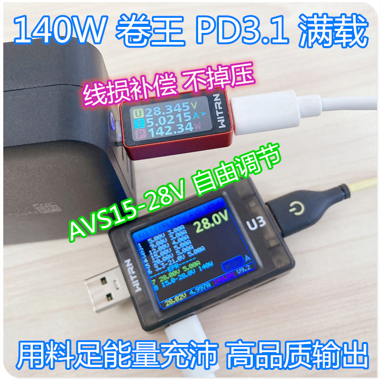 真PD3.1~140W氮化镓充电器双出100+35/65+65 不闪断AVS 24V 133W UFCS 28V PPS喜源源国际电源 110V也可满载