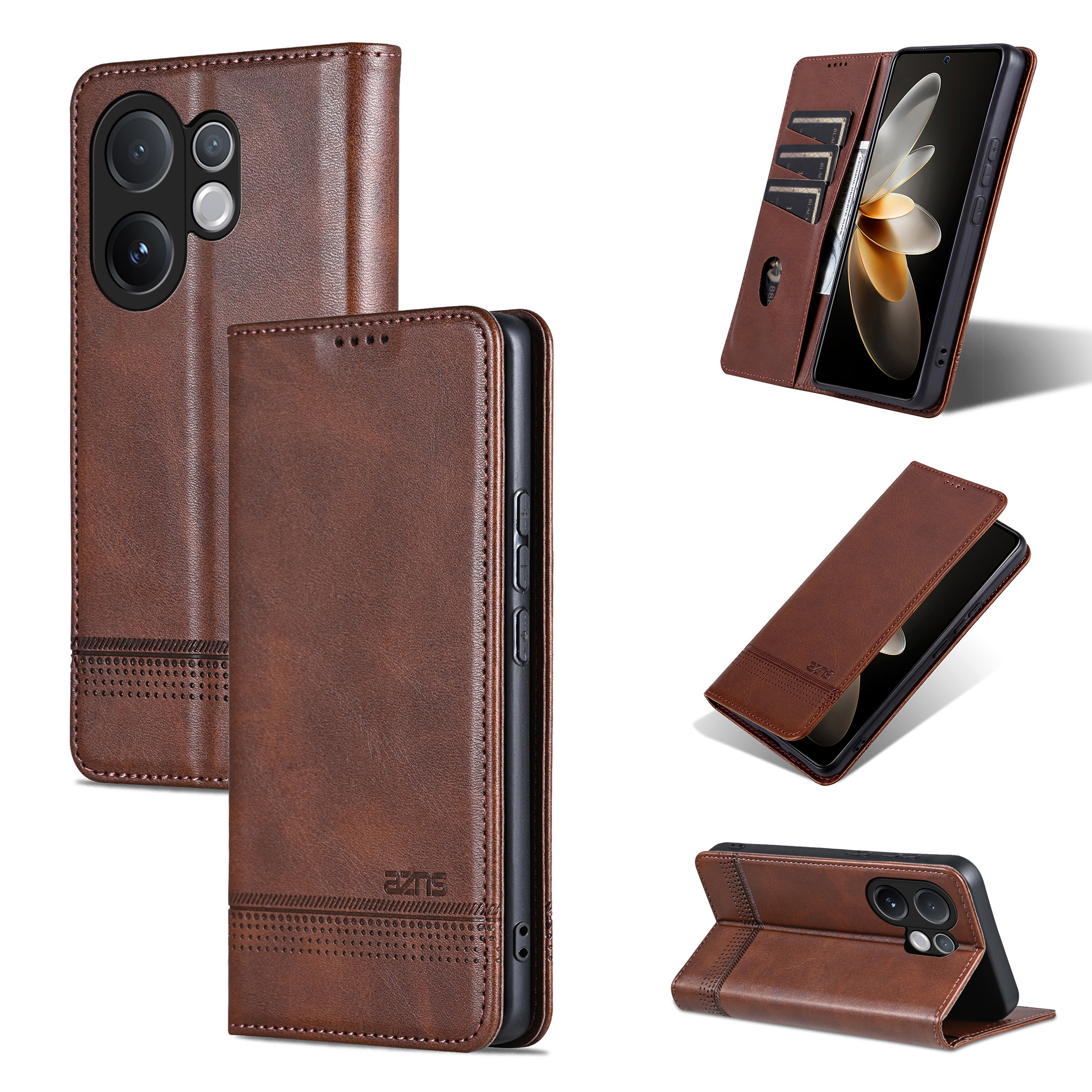 适用于vivo V60(5G)国外版手机壳前后对吸全包vivo v60 5g保护皮套真皮5G镜头防摔软壳男女高档商务钱包款