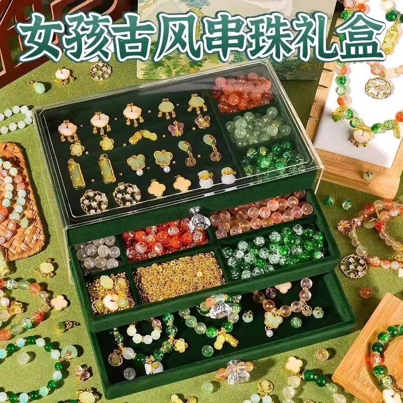 babycare串珠礼盒手工diy材料首饰项链手链儿童女孩礼物生日玩具