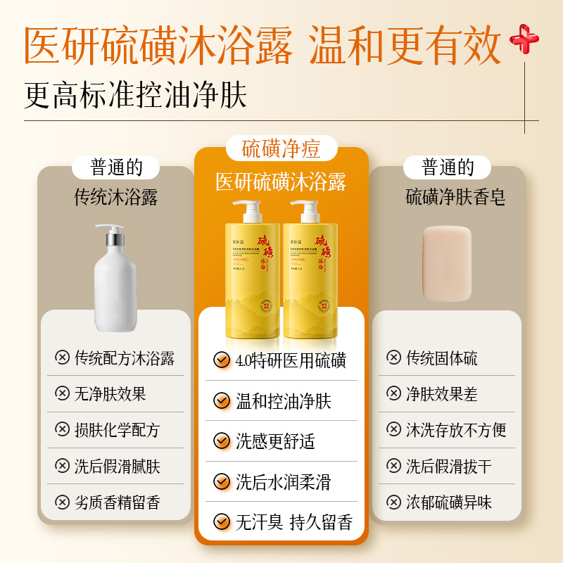 硫磺除螨沐浴露男女成人后背皮肤瘙痒祛痘持久留香大容量独特清洁