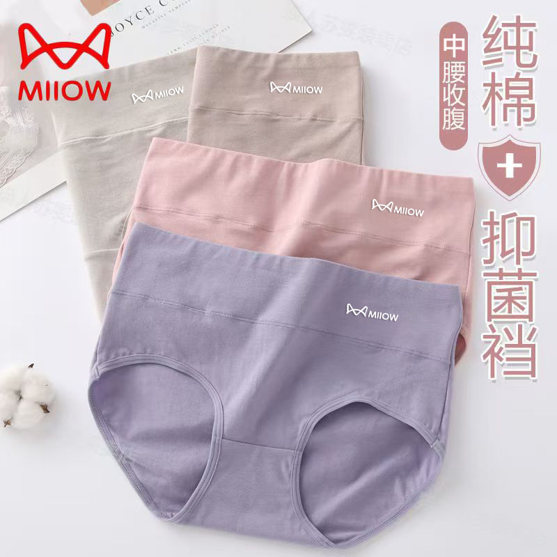 猫人女士棉内裤纯棉抑菌內裆透气精梳棉舒适柔软面料中腰抗菌收腹