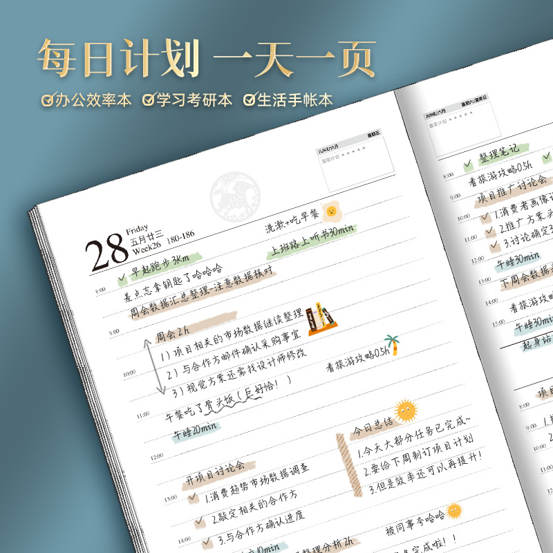 必记中国风2026年日程本A5复古每日计划表大号商务办公笔记本子A4时间管理效率手册日记本日历记事本定制logo