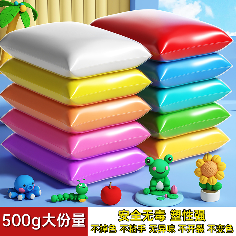 超轻轻粘土彩泥黏土橡皮泥太空泥儿童无500g500克大包装白色红色