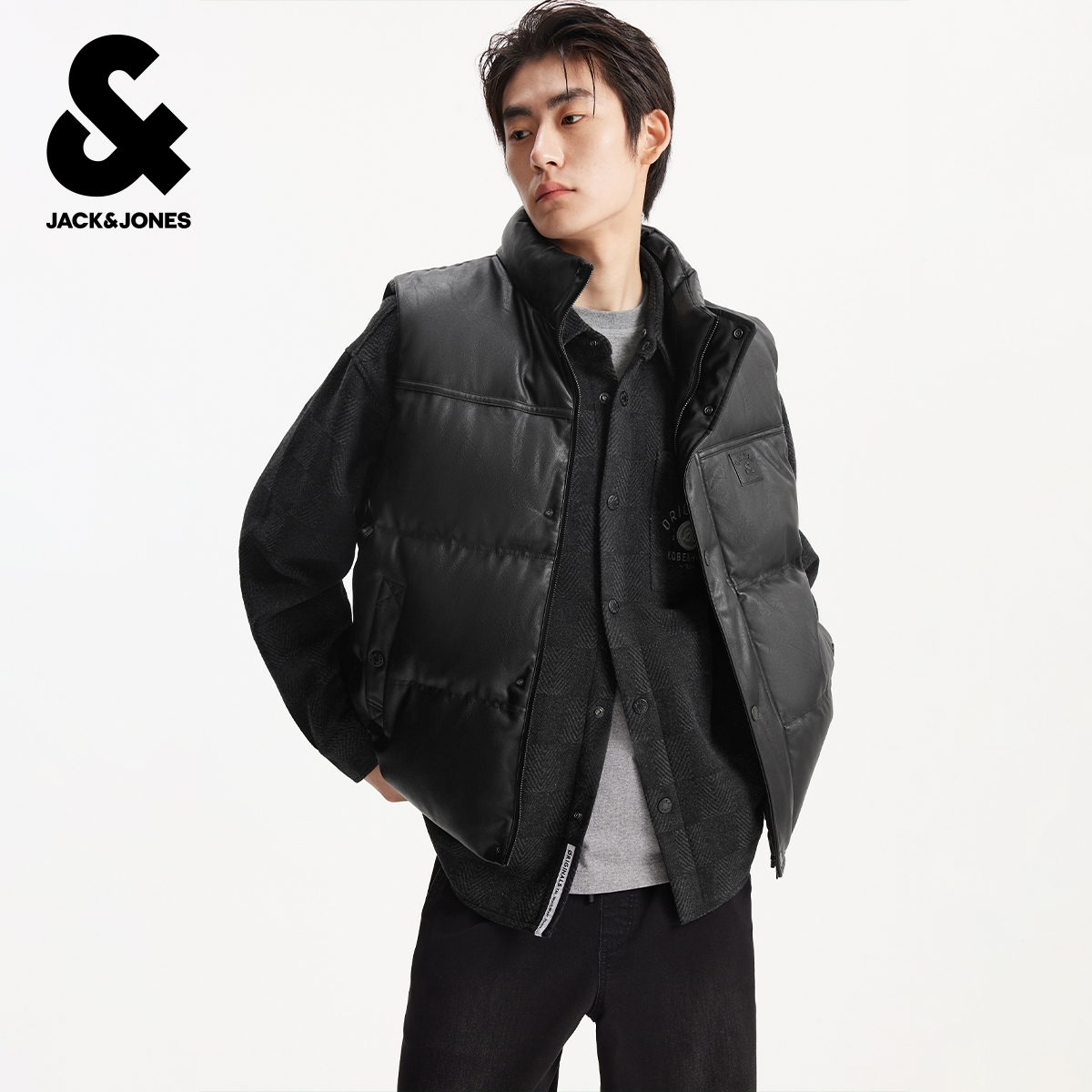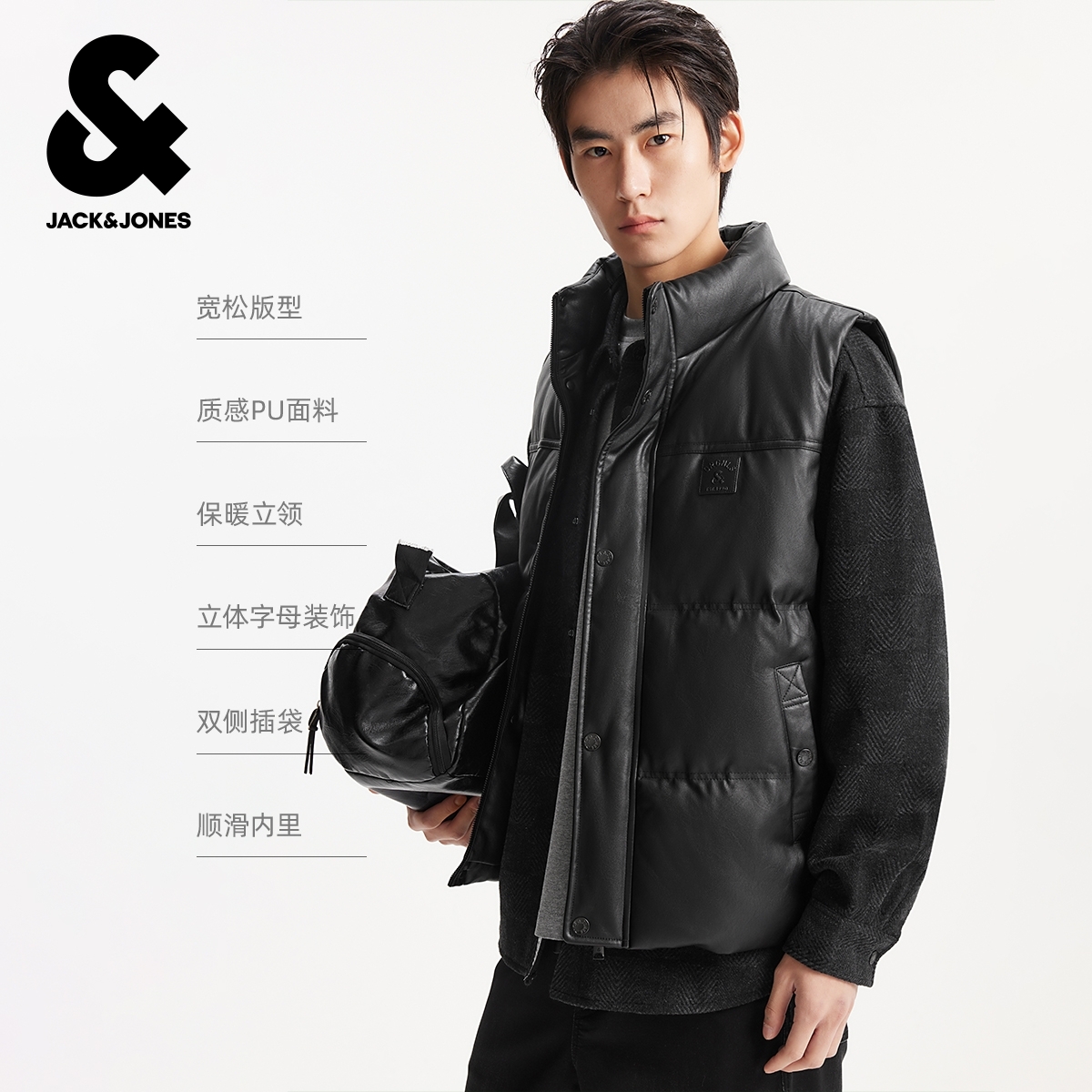 杰克琼斯男装秋冬季节马甲背心宽松立领拉链摁扣字母时尚百搭休闲