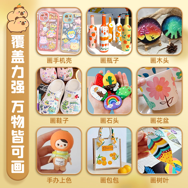 卡皮巴拉丙烯马克笔小学生美术专用画笔水彩笔不透色可叠色幼儿园儿童彩色笔套装可水洗笔芯48色36水性