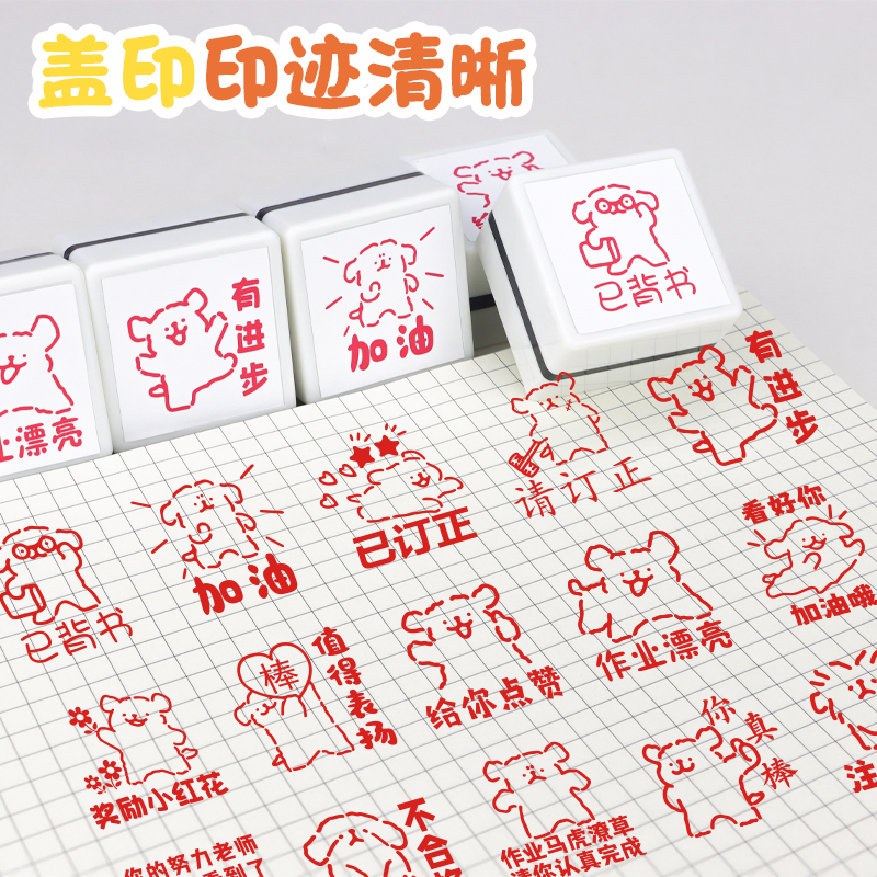 教师用评语线条小狗Maltese卡通可爱表情包印章老师教学用批改作业印章已背书鼓励加油优良奖励进步老师盖章