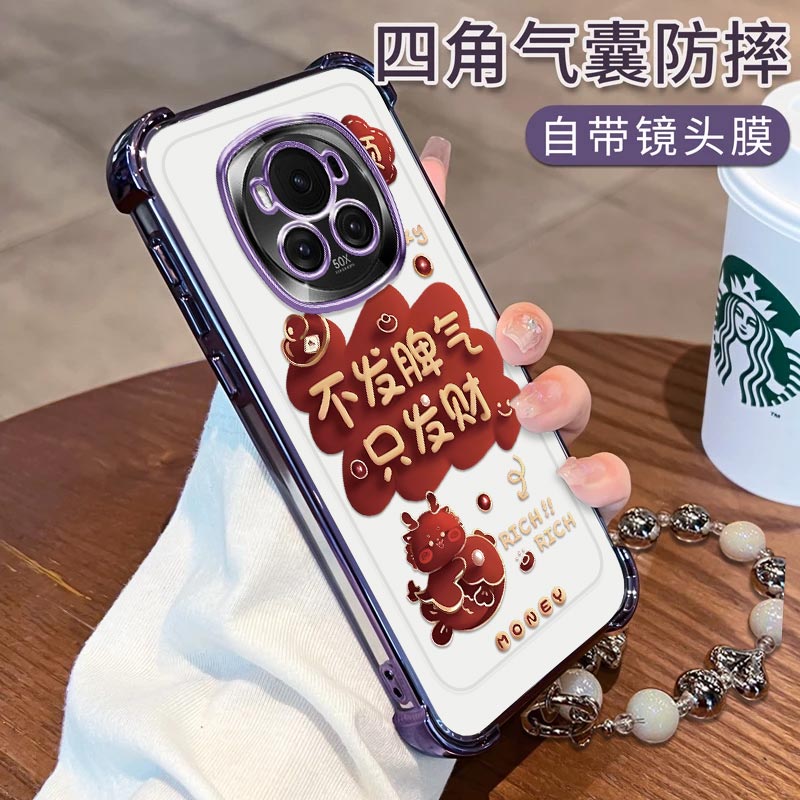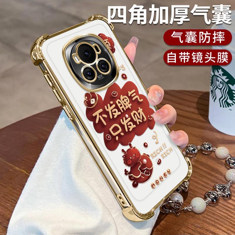 适用华为荣耀Magic6手机壳发财金蛇电镀四角防摔Honor简约硅胶气囊全包Maigc6Pro高颜值手链女款保护套