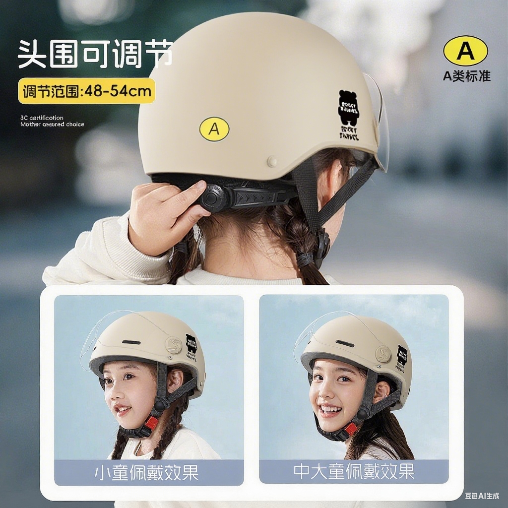 3c认证儿童头盔女孩男孩摩托电动车小孩6到12岁四季通用款安全帽