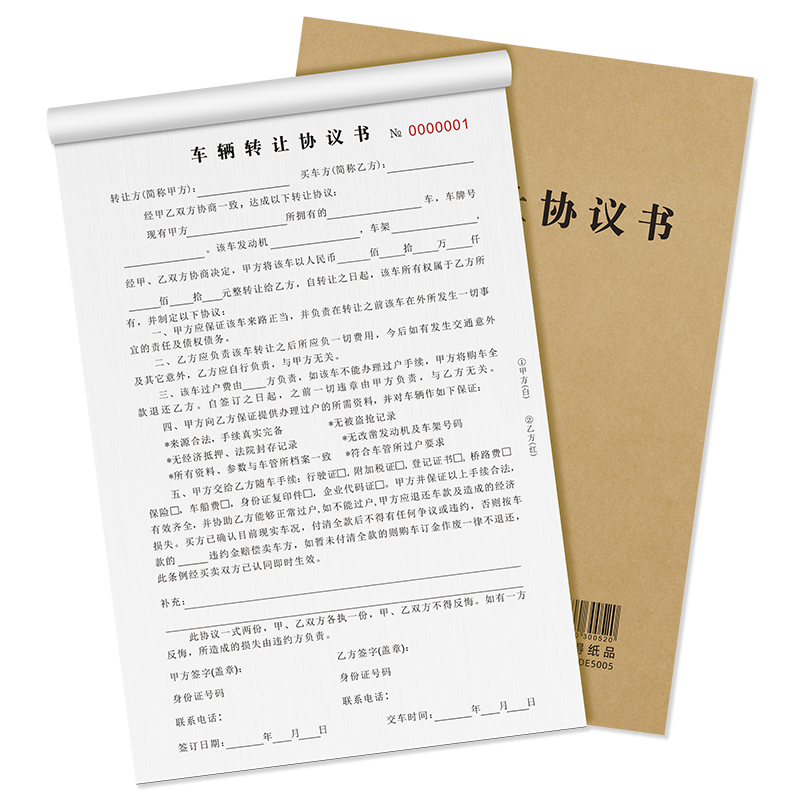 二联车辆转让协议书二手汽车购车交易合同旧机动车买卖单定制印刷