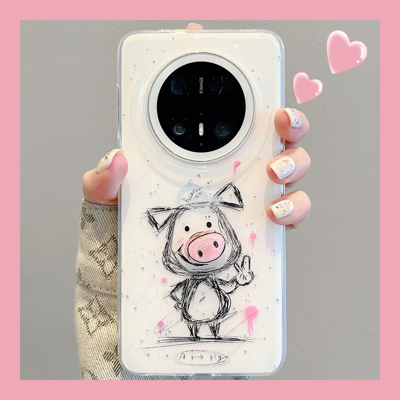 适用华为mate70pro+手机壳可爱涂鸦素描比耶小猪转转鼻子Mate60pro链条挂绳mate70新款双层pura70pro防摔女款
