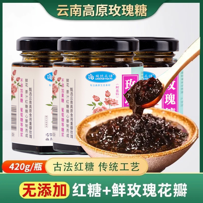 云南特产玫瑰糖花酱果酱液体红糖鲜花酱冰凉粉玫瑰伴侣食用冰粉