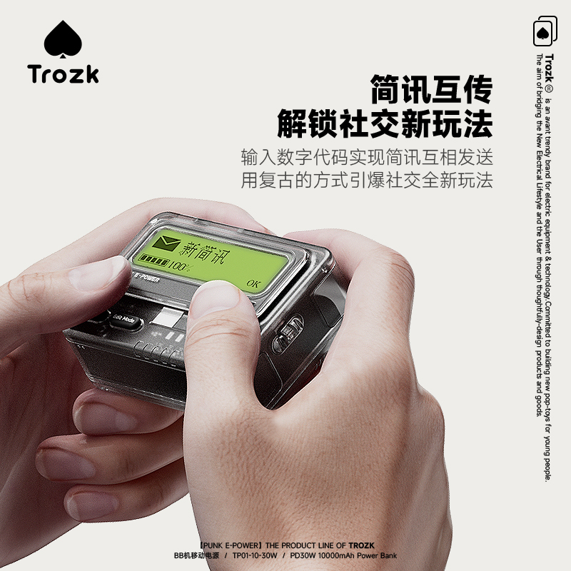 Trozk特洛克BB机移动电源10000毫安充电宝手机充电电源复古设计适用苹果16充电头iPhone充电宝可以上飞机高铁