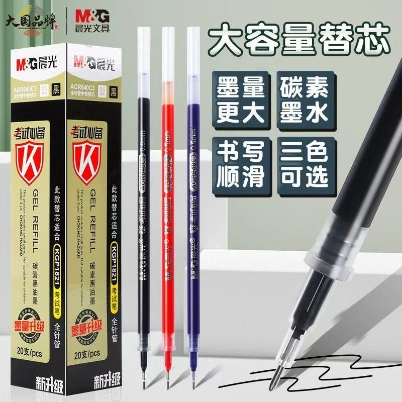 晨光考试替芯全针管中性笔芯0.5mm碳素黑/红细头墨量升级签字笔芯