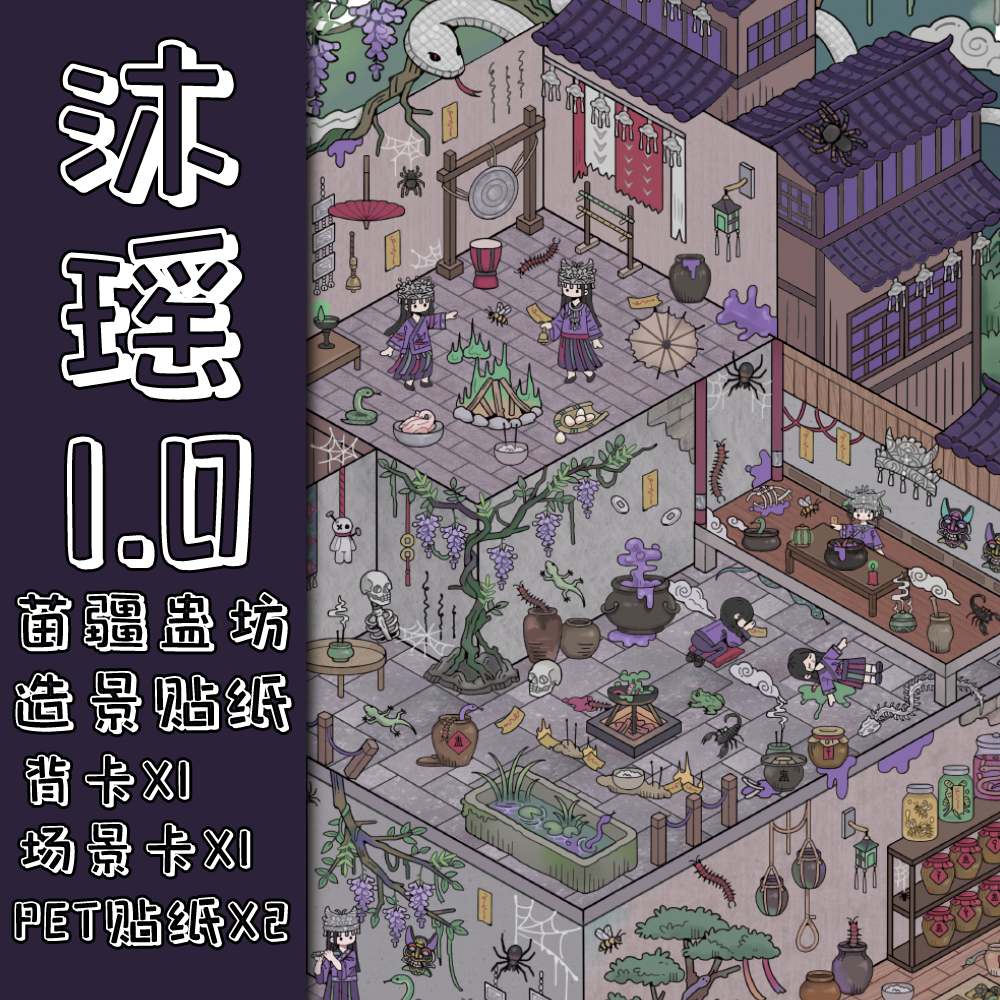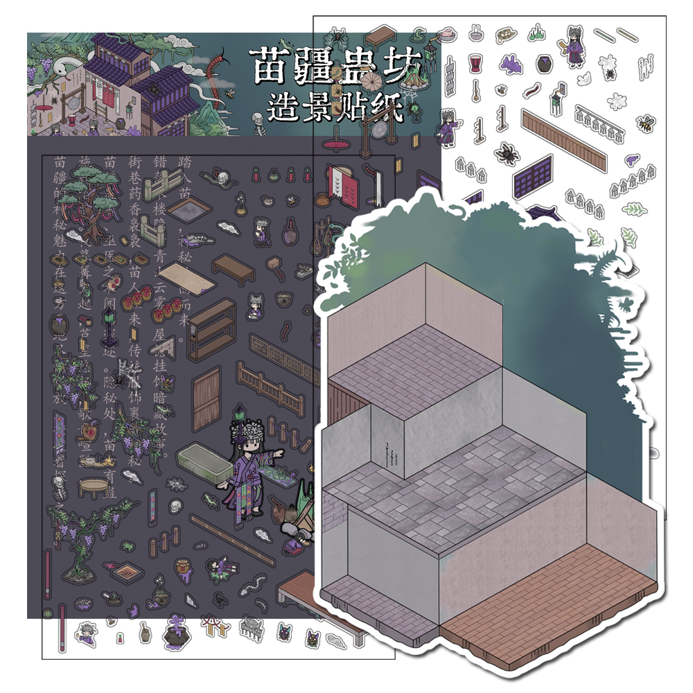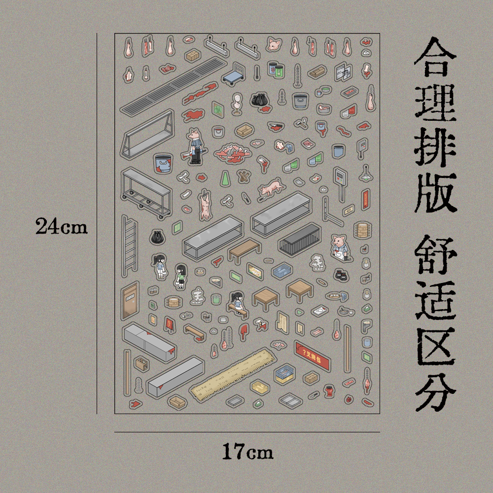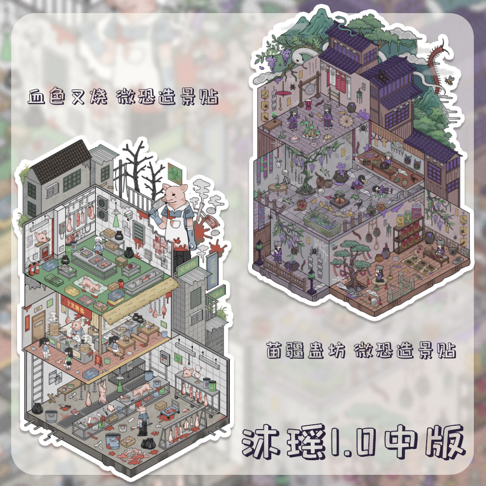 沐瑶1.0血色叉烧微恐系列3D造景贴微缩场景景观贴DIY解压益智贴画