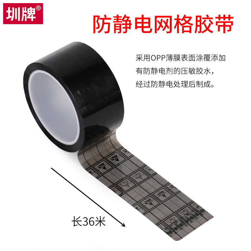 圳牌711 黑色网格OPP防静电胶带电子专用ESD防静电封箱胶带透明双抗静电胶带防静电指数10的6/7/9次方36米/卷
