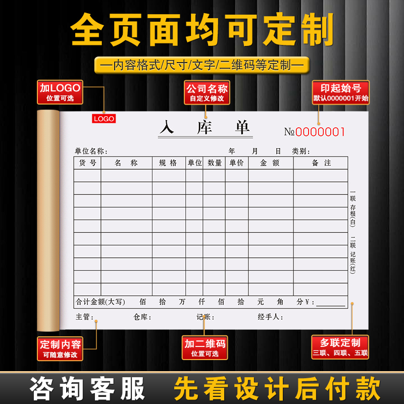 入库单三联产品产成品出库单据仓库采购领料本原材料出入库单二联