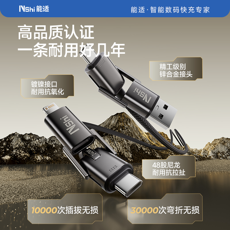 能适240w数据线适用iPhone16苹果小米适用华为充电线超级快充二三合一线多头快充车载多功能一拖三usb转typec