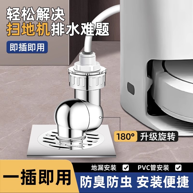 扫地机器人排水地漏接头石头云鲸科沃斯3分配件下水管道专用三通