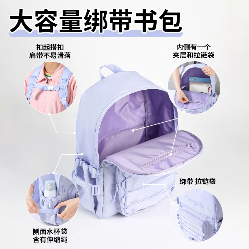 日本kokuyo国誉Campus网格绑带款书包简约双肩包初中女高中生大容量多功能痛包时尚简约多功能纯色休闲背包
