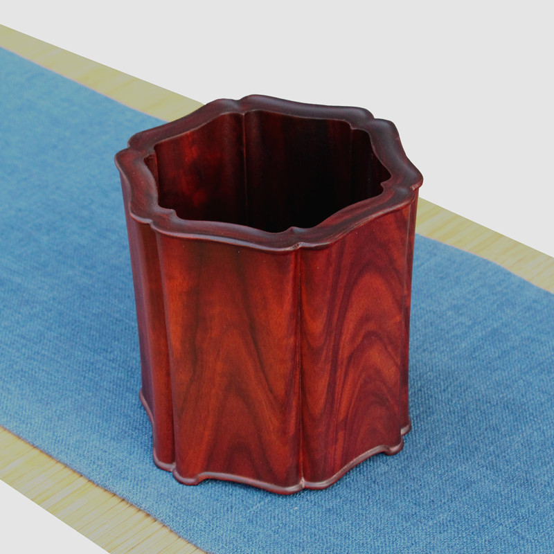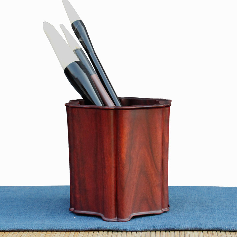 红木创意笔筒 原木雕刻多功v能收纳摆件 实木质办公桌商务礼品笔
