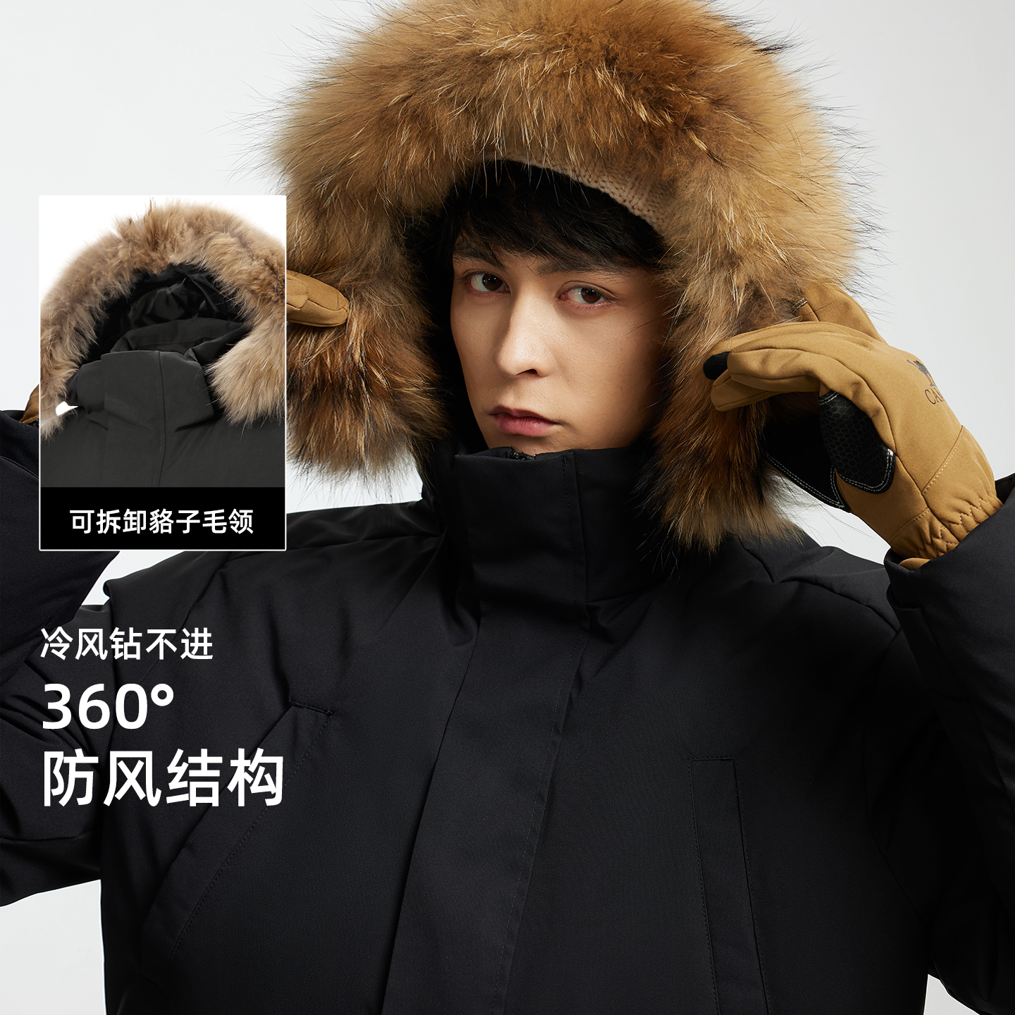 【拒水绒】骆驼户外羽绒服女黑色毛领中长款派克2025冬季新款外套