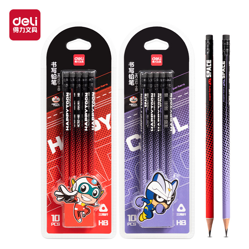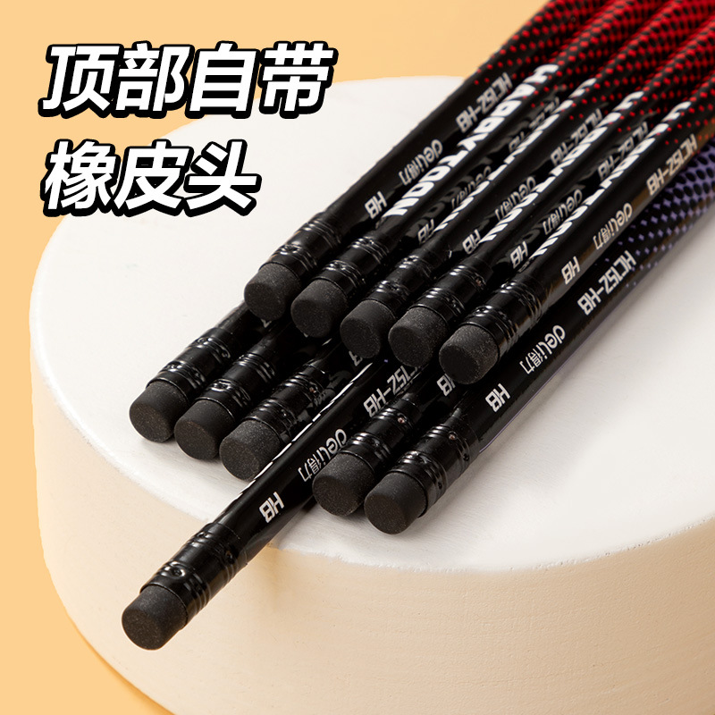 得力HB学生铅笔自带橡皮头书写铅笔儿童木杆HB铅笔绘画笔练字笔